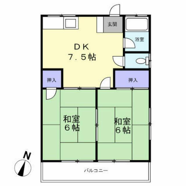 | 間取り | 2DK(DK7.5和室6和室6) | 主要採光面 | 南東 |