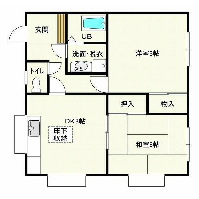 | 間取り | 2DK(DK8洋室8和室6) | 主要採光面 | 南西 |