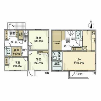 | 間取り | 3LDK(LDK18.8洋室5.8洋室7.4洋室8.1) | 主要採光面 | 南 |