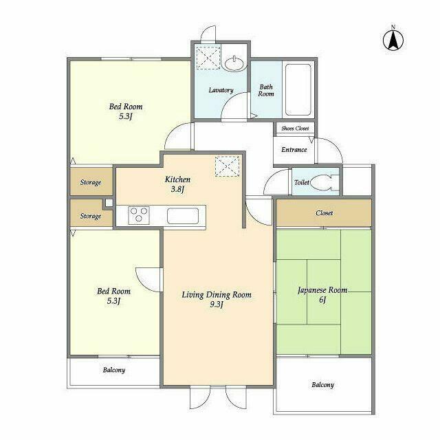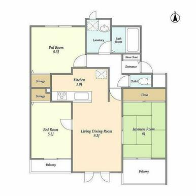 3LDK(K3.8LD9.3和室6洋室5.3洋室5.3) |