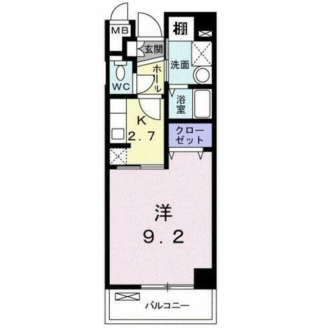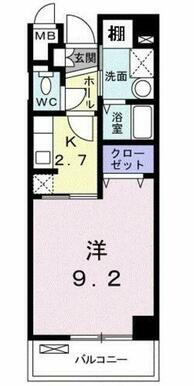 | 間取り | 1K(K2.7洋室9.2) | 主要採光面 | 南西 |