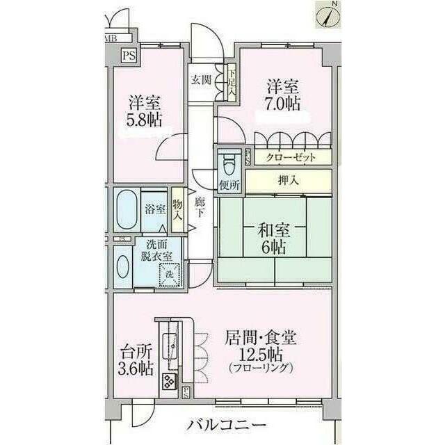 | 間取り | 3LDK(LDK16.1和室6洋室7洋室5.8) | 主要採光面 | 南東 |
