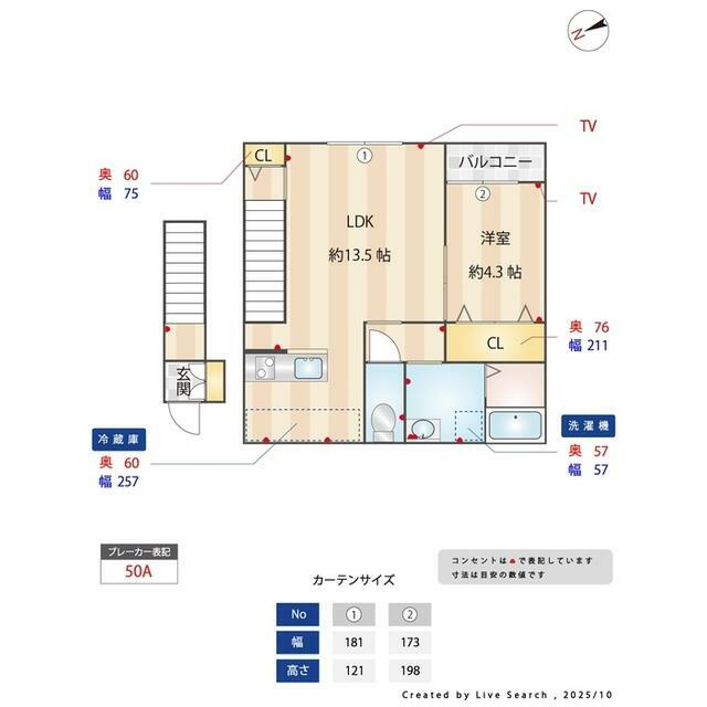 | 間取り | 1LDK(LDK13.5洋室4.3) | 主要採光面 | - |