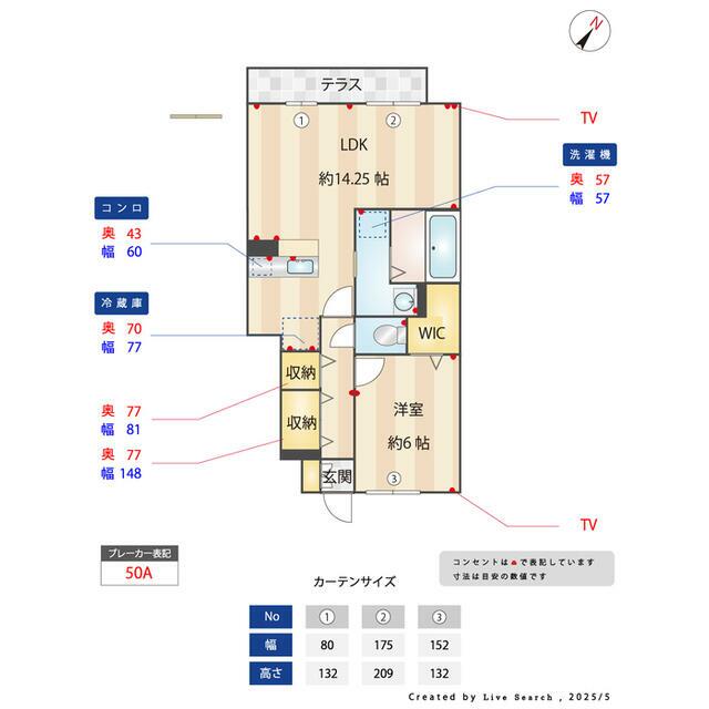 | 間取り | 1LDK(LDK14.25洋室6) | 主要採光面 | - |