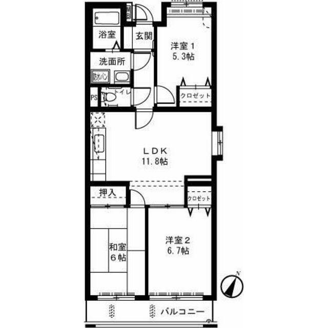 | 間取り | 3LDK(LDK11.8和室6洋室6.7洋室5.3) | 主要採光面 | 南東 |