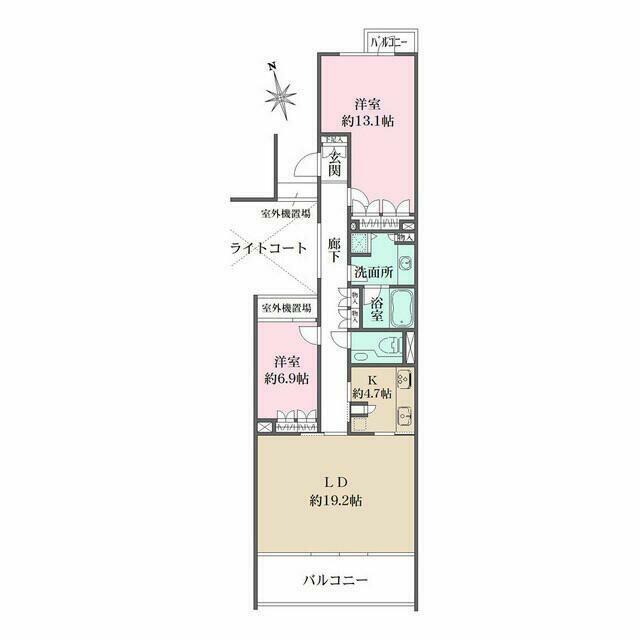 | 間取り | 2LDK(LD19.2K4.7洋室13.1洋室6.9) | 主要採光面 | 南 |