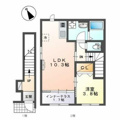 | 間取り | 1LDK(LDK10.3洋室3.8) | 主要採光面 | 南西 |