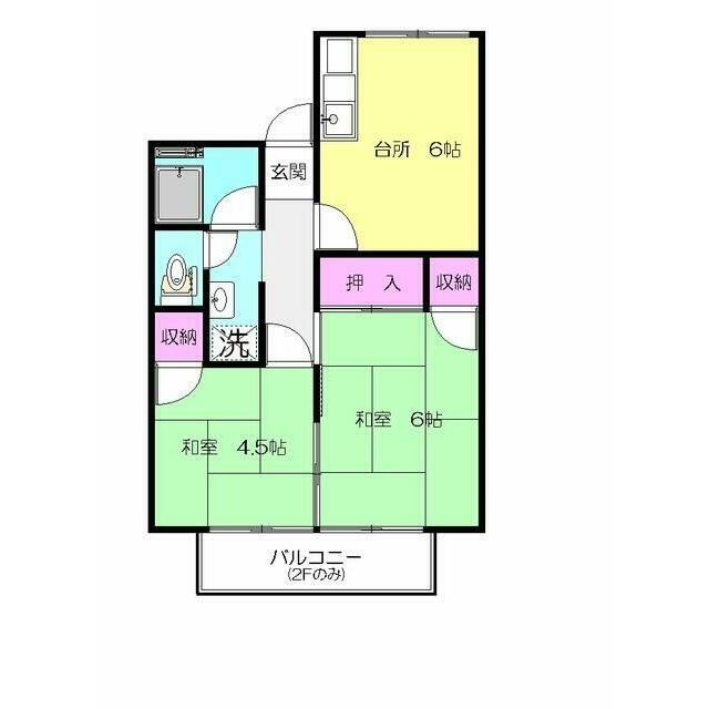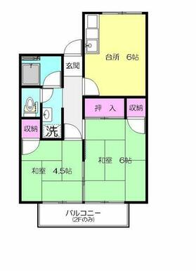 | 間取り | 2DK(DK6和室6和室4.5) | 主要採光面 | 南 |