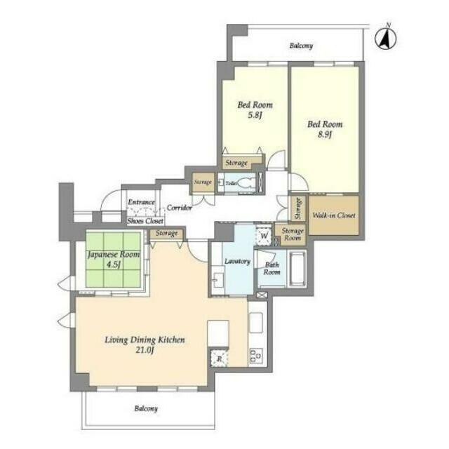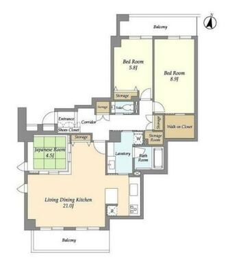 | 間取り | 3LDK(LDK21洋室8.9洋室5.8洋室4.5) | 主要採光面 | 北西 |
