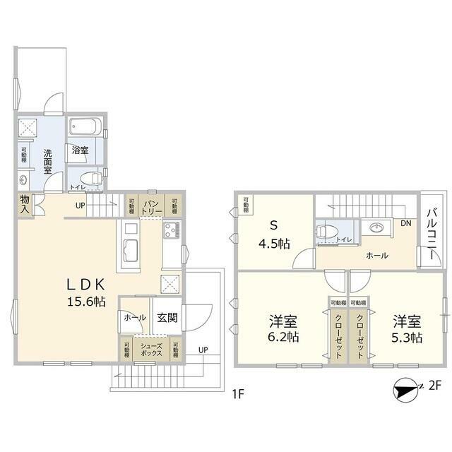 | 間取り | 2SLDK(LDK15.6洋室6.2洋室5.3納戸(S)4.5) | 主要採光面 | 北 |