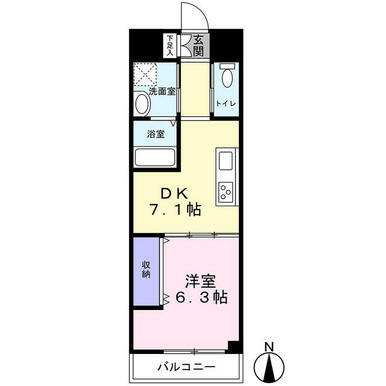 | 間取り | 1DK(DK7.1洋室6.3) | 主要採光面 | 南 |