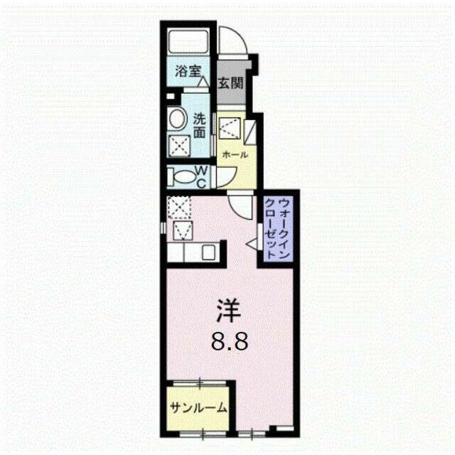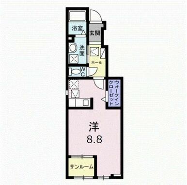 | 間取り | ワンルーム(洋室8.8) | 主要採光面 | 南西 |