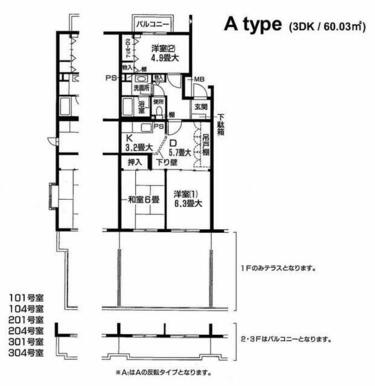 | 専有面積 | 60.03㎡ | 階建/階 | 3階建/1階 |
