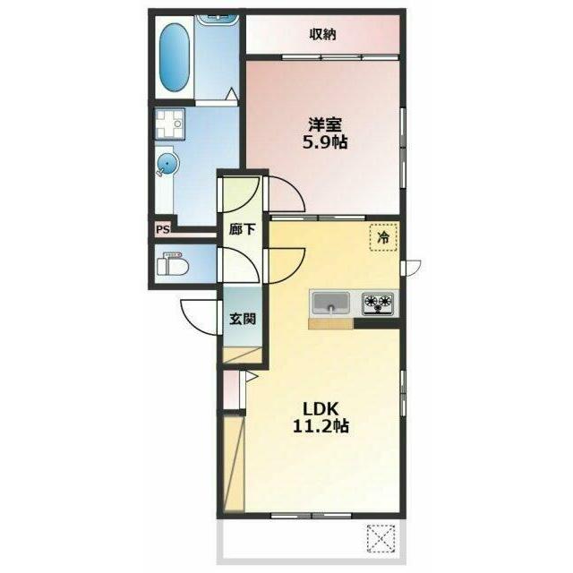 | 間取り | 1LDK(LDK11.2洋室5.9) | 主要採光面 | 南西 |