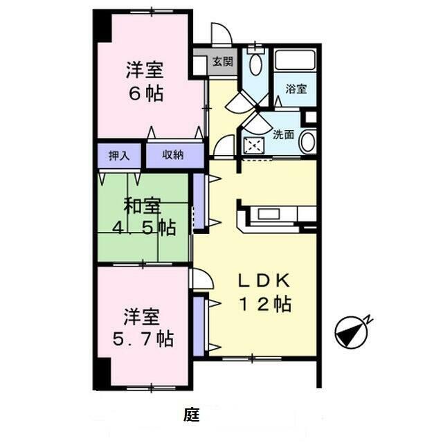 | 間取り | 3LDK(LDK12洋室6洋室5.7和室4.5) | 主要採光面 | 南東 |