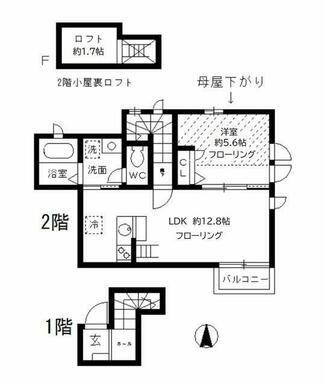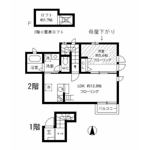 1LDK(LDK12.8洋室5.6ロフト1.7) |
